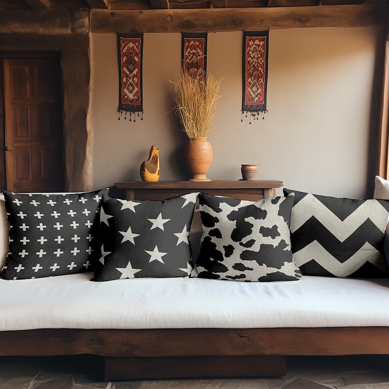 Black White Double Side Cushion Cover 1PC Soft Throw Pillow Cover Cushion Case Pillowcase for Sofa Bedroom Livingroom Superior Quality Machine Washable  Outdoor Cushion for Sofa Couch Bed Chair 5