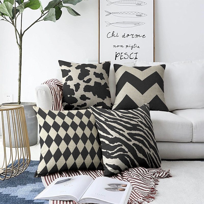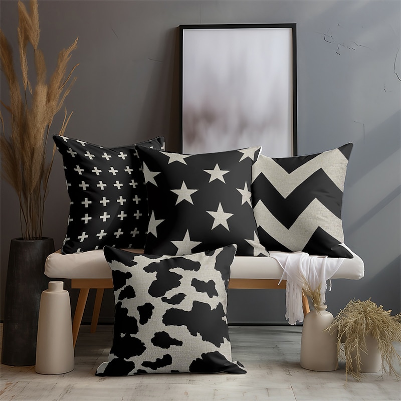 Black White Double Side Cushion Cover 1PC Soft Throw Pillow Cover Cushion Case Pillowcase for Sofa Bedroom Livingroom Superior Quality Machine Washable  Outdoor Cushion for Sofa Couch Bed Chair 4