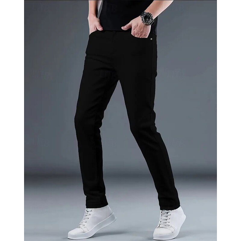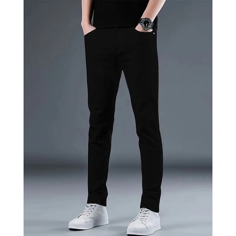 More information about Men's Dress Pants Skinny Trousers Chinos Buttons Pocket Solid Color Comfort Formal Party Work Fashion Classic Style Black White Micro-elastic
