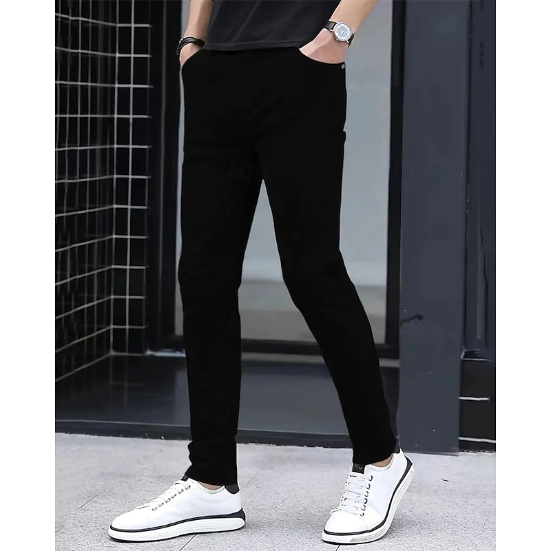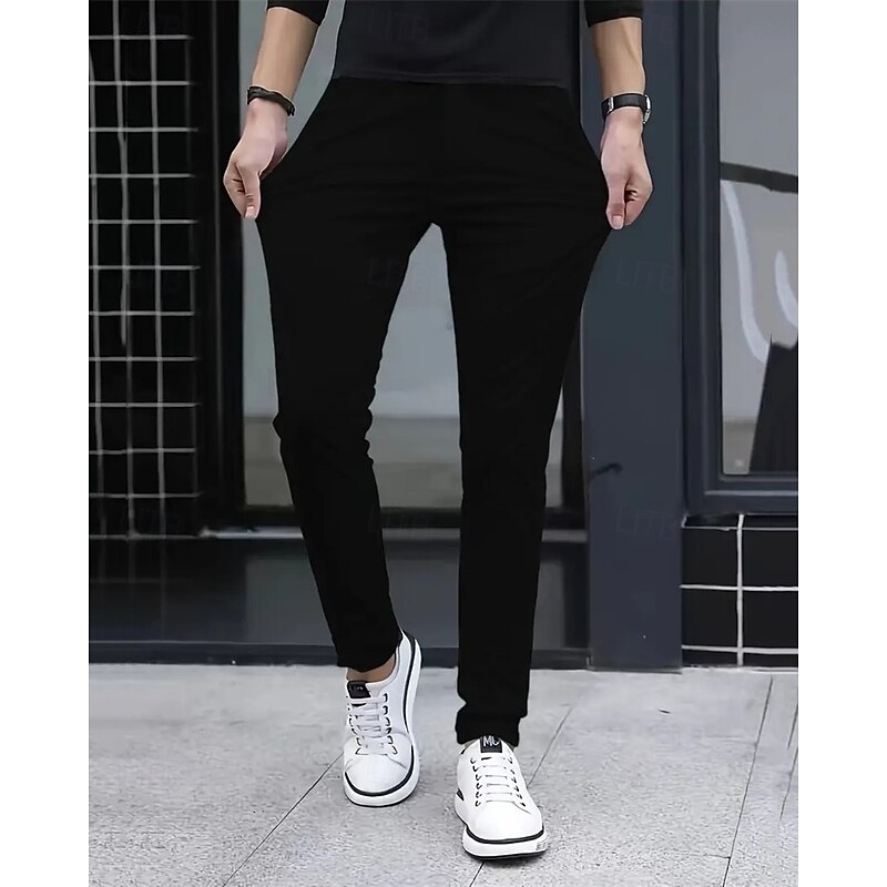 HOT ! Men's Dress Pants Skinny Trousers Chinos Buttons Pocket Solid Color Comfort Formal Party Work Fashion Classic Style Black White Micro-elastic