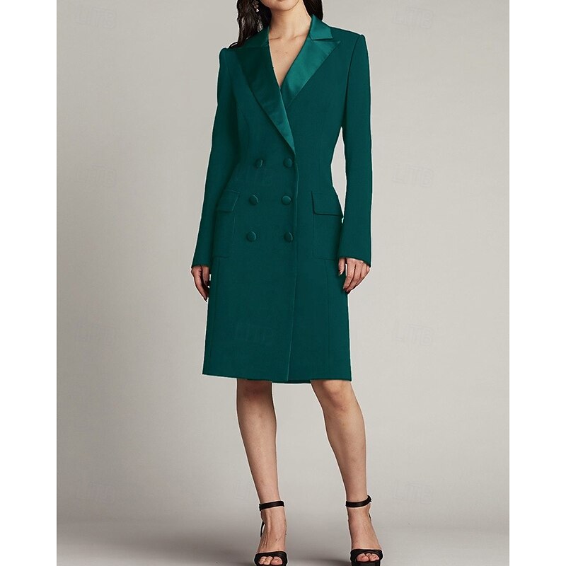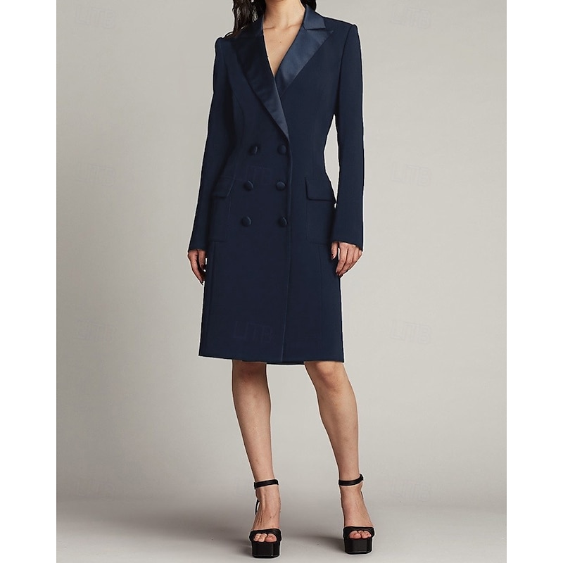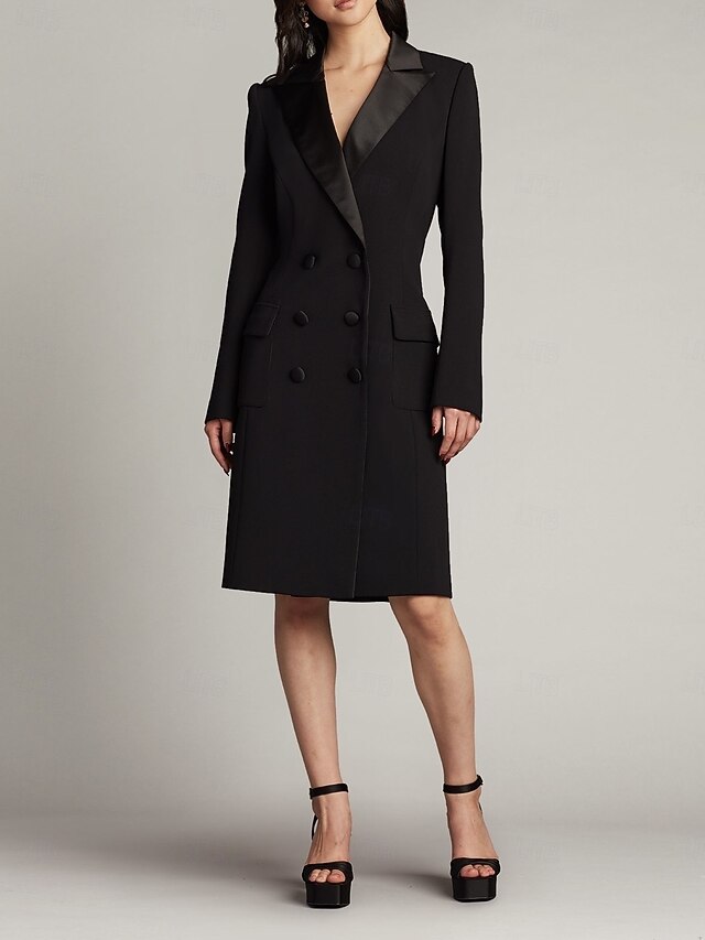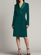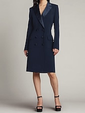More information about Tuxedo Dress Sheath / Column Wedding Guest Church Satin Elegant Simple Long Sleeve Midi Length Notched Lapels Double Breasted