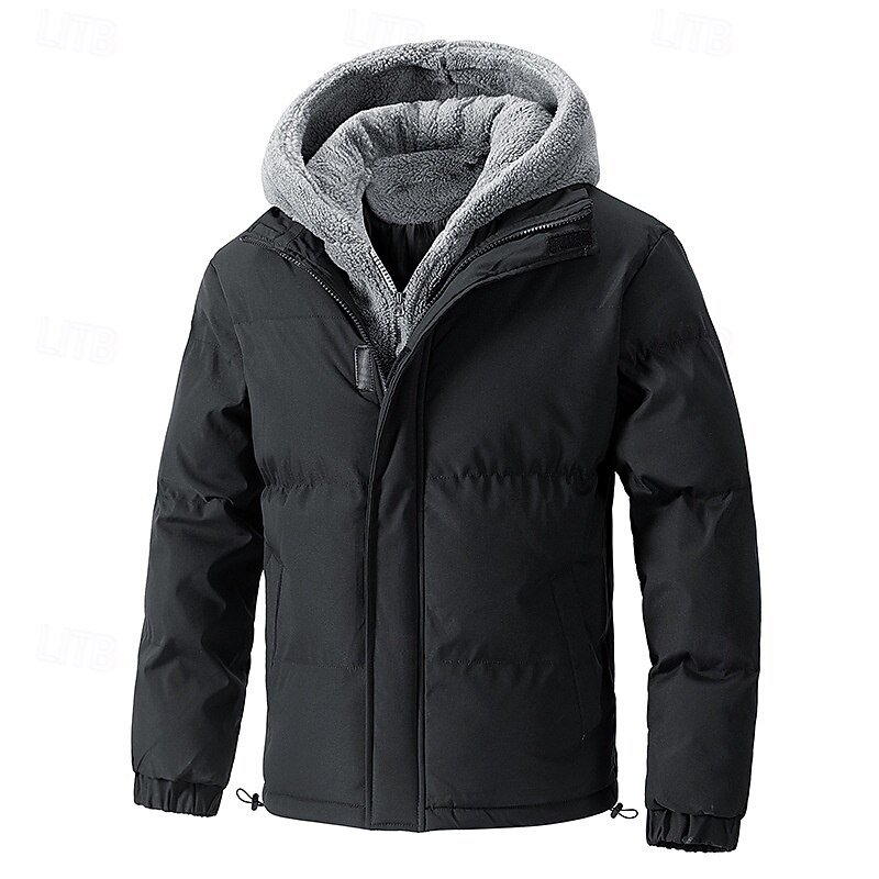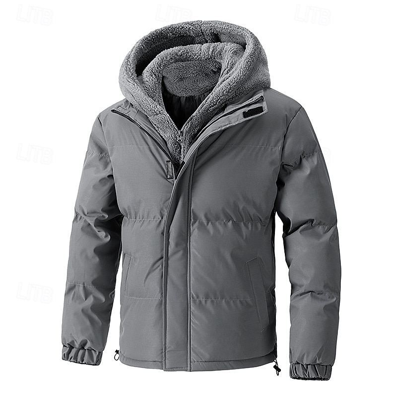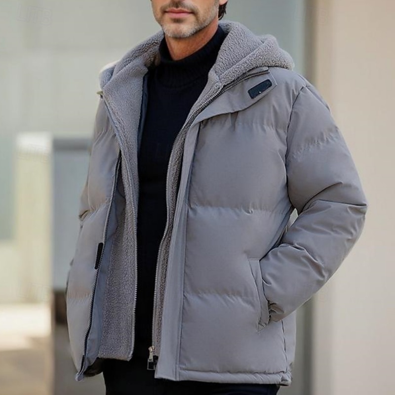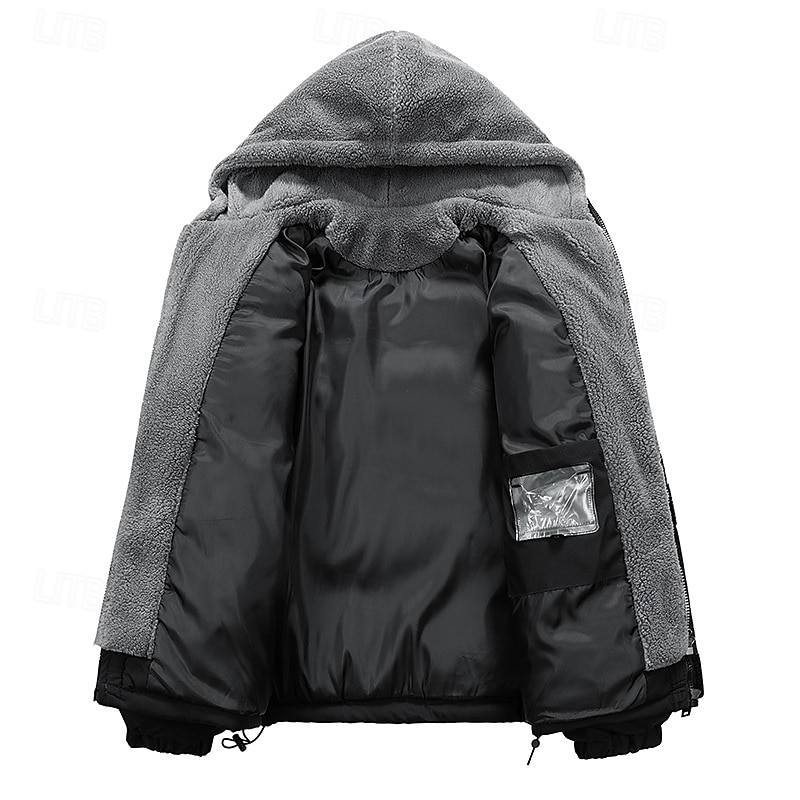 More information about Men's Winter Jacket Puffer Jacket Fleece Jacket Padded 2 in 1 Fake two piece Polyster Hoodie Pocket Outdoor Date Casual Daily Regular Fashion Casual Thermal Warm Windproof Winter Plain Dark Grey