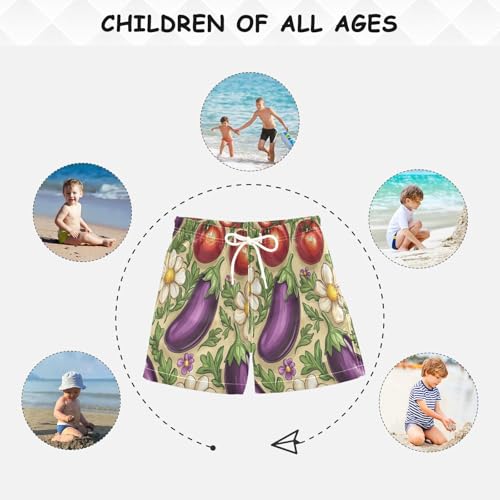 Vegetable Garden Floral Pattern Boys Board Shorts Quick Dry Boys Bathing Suit Toddler Swim Trunks,XS 4
