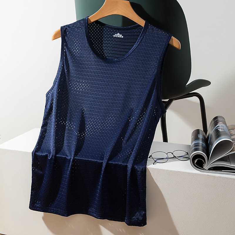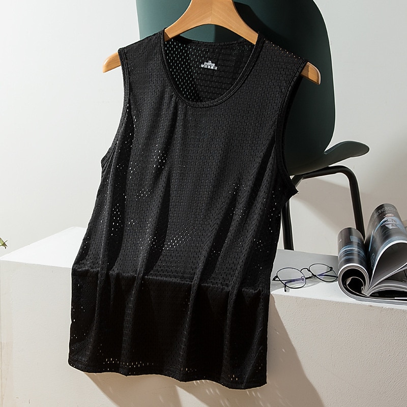 More information about Men's Tank Top Vest Top Undershirt Sleeveless Shirt Sleeveless Crew Neck Summer Solid Color Casual Comfortable Mesh Outdoor Street Daily Black White Navy Blue Top Tee for Men