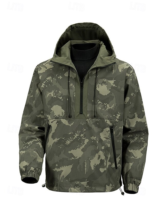 More information about Men's Sport Coat Hiking Jacket Parka Windcheater Jacket Sports Outdoor Casual Waterproof Windbreaker Zipper Pocket Fall Winter Camouflage Active Hooded Regular Green Jacket