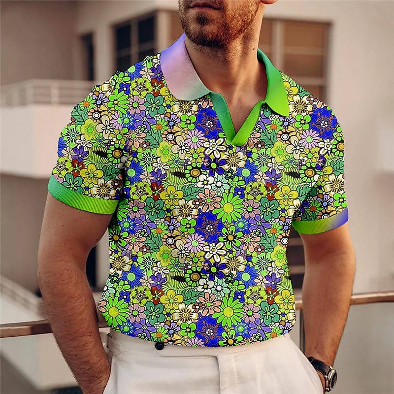 Kentucky Derby Men's Floral Hawaiian Polo Shirts Golf Shirt Short Sleeve Polo Shirts V Neck Casual Beach Wear Vacation Wear Tropical Wear Party Outfits 3D Print Blue-Green Yellow Red 6