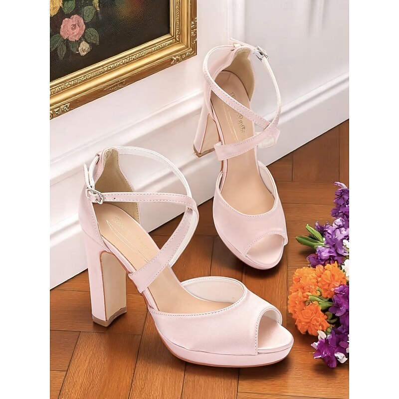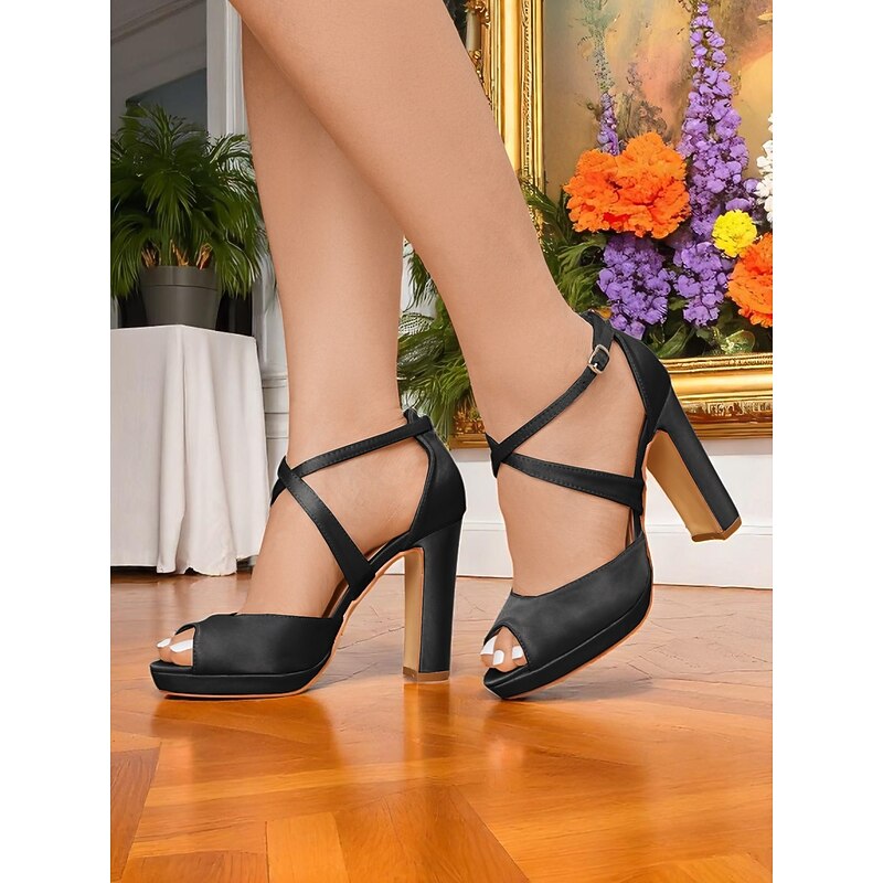 Highlights - Luxurious satin upper material - Elegant embellished buckle detail - Comfortable synthetic leather lining - Stylish chunky heel design - Classic round toe shape - Durable rubber outsole for long-lasting wear