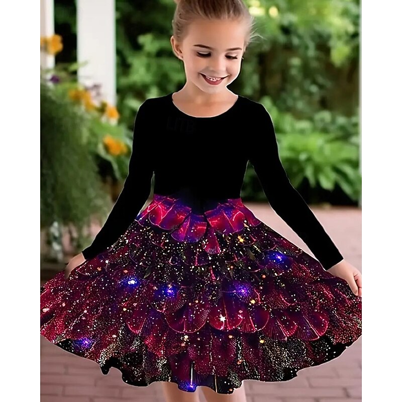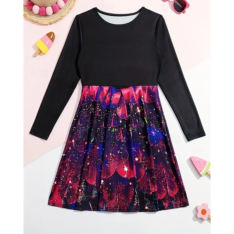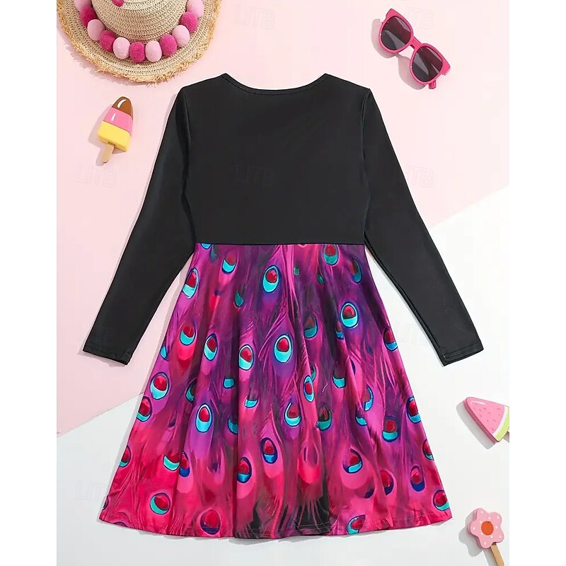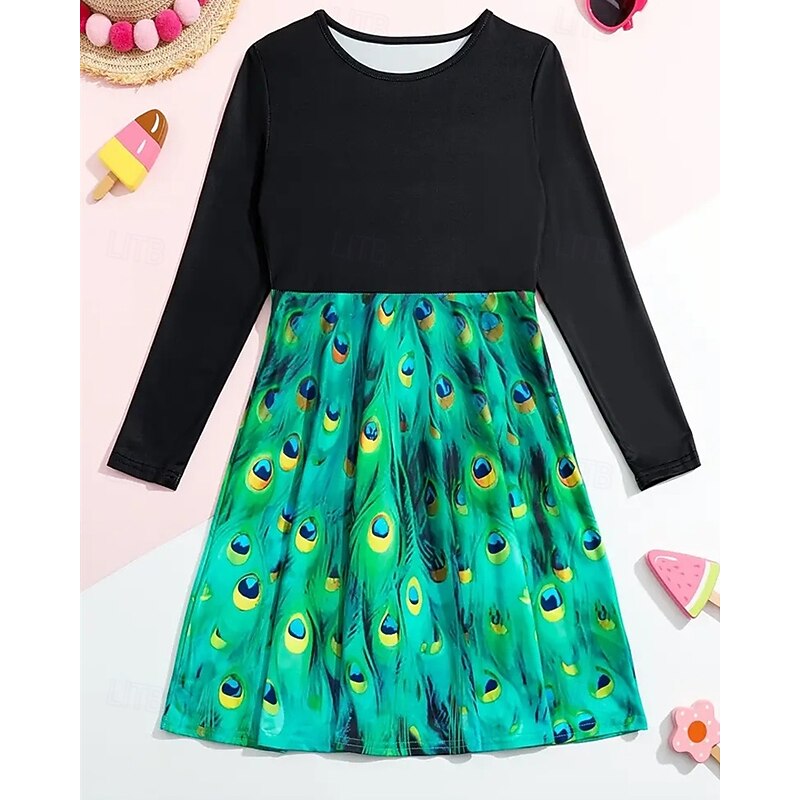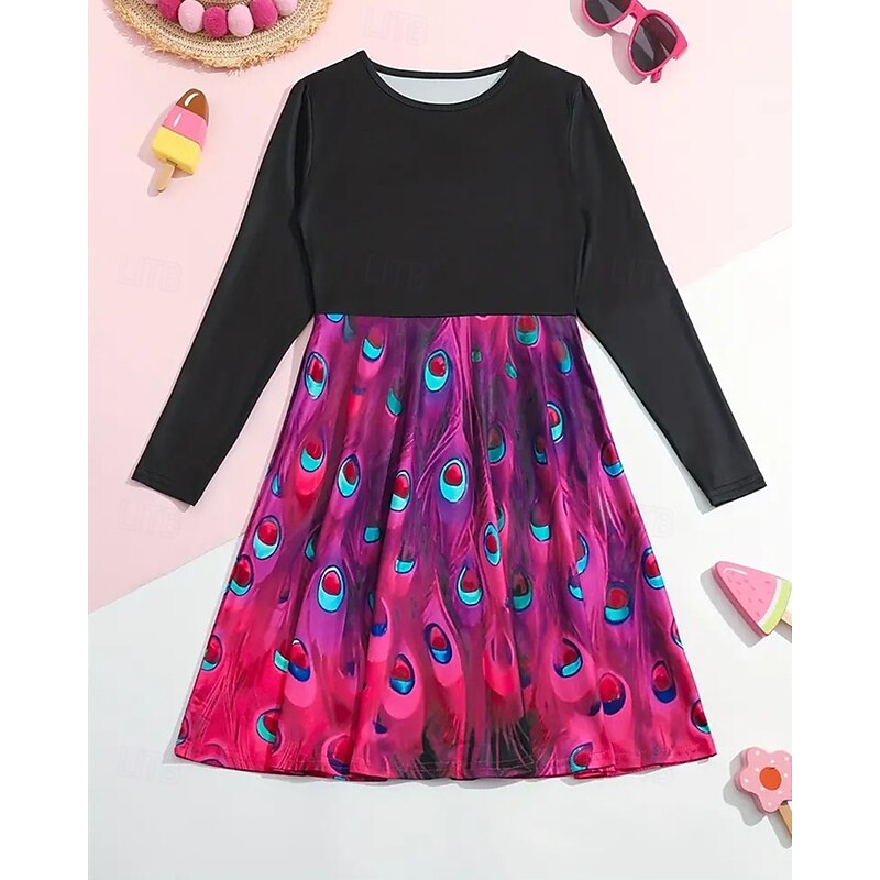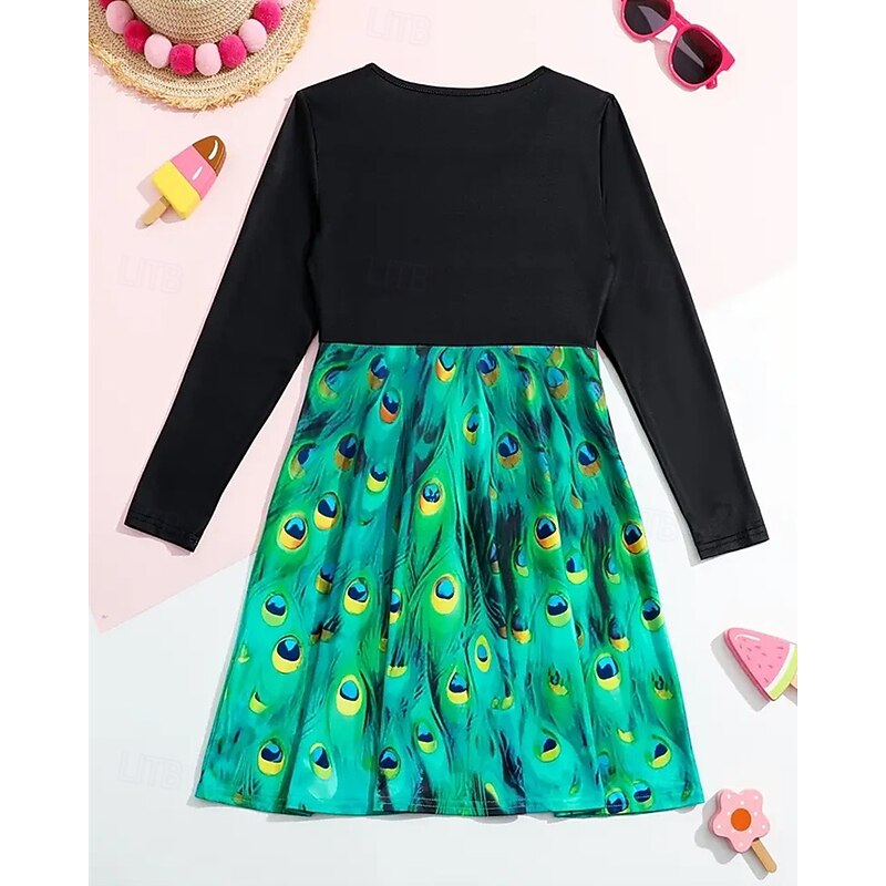 More information about Girls' 3D Graphic Peacock Dress Long Sleeve Summer Spring Vacation Daily Holiday Princess Beautiful Sweet Kids 4-12 Years Casual Dress A Line Dress Knee-length Regular Fit
