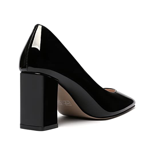 MODENCOCO Women's Thick Square Toe Patent Slip On Solid Block High Heel Pumps Shoes 3 Inch 6