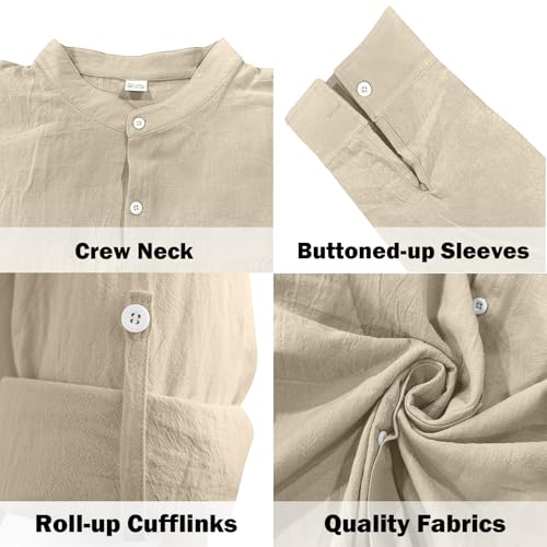Mens Long Sleeve Shirts Casual Button Down Shirt Men Band Collar Slim Fit Linen Dress Shirts 3