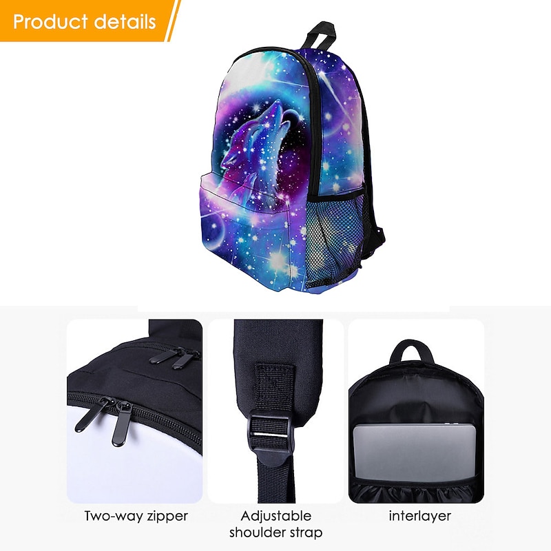 Galaxy Wolf Backpack for Kids and Teens – Howling Wolf in Space School Bag with Cosmic Design for Boys and Girls 7