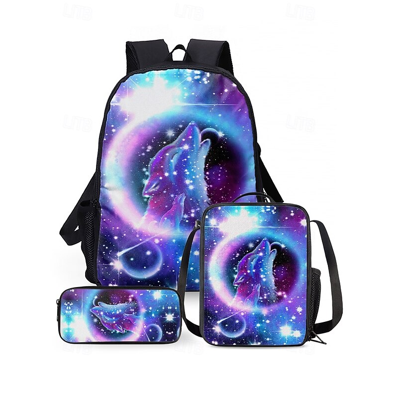 Galaxy Wolf Backpack for Kids and Teens – Howling Wolf in Space School Bag with Cosmic Design for Boys and Girls 3