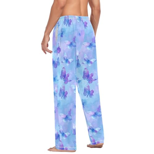 Purple Tie Dye Butterflies Men Cotton Flannel Pajama Pants Mens Lounge Sleep PJ Bottoms S 3