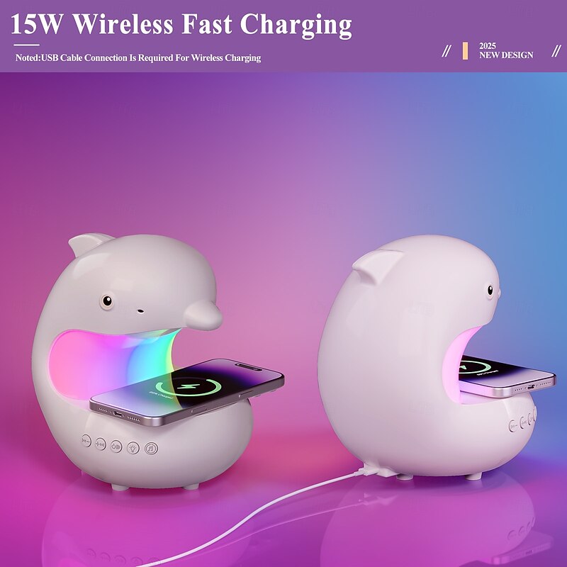 $32.99 - 1 Pc Mobile Wireless Charging Night Light Music Player RGB Colorful Lights Follow Music Rhythm Cute Dolphin Shaped Type-C Plug in Bedroom Bedlight Dimming Timer Function 2025. Shop for cheap Decorative Lights online? Buy at lightinthebox.com on sale today!