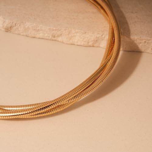 • Layered Choker Design:This 3-layer-twisted gold snake chain necklace is retro and exotic, thick chain choker for women, very trendy.These gold necklaces stack are versatile and looks great with both casual and formal wear.