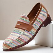 HOT ! Men's Woven Multicolor Nylon Woven Slip-On Loafers with Leather Trim - Relaxed Fit for Casual Outings