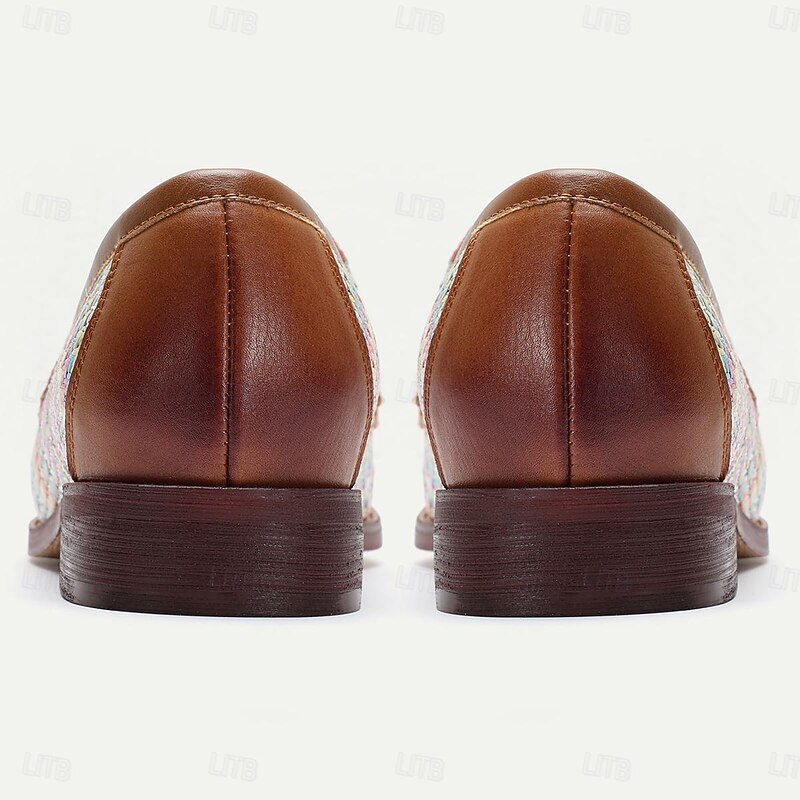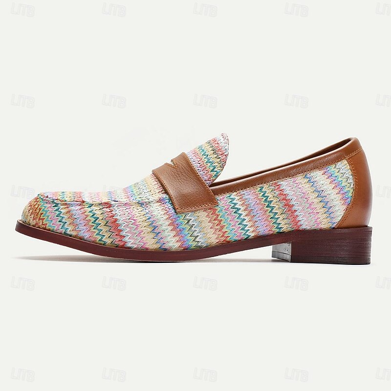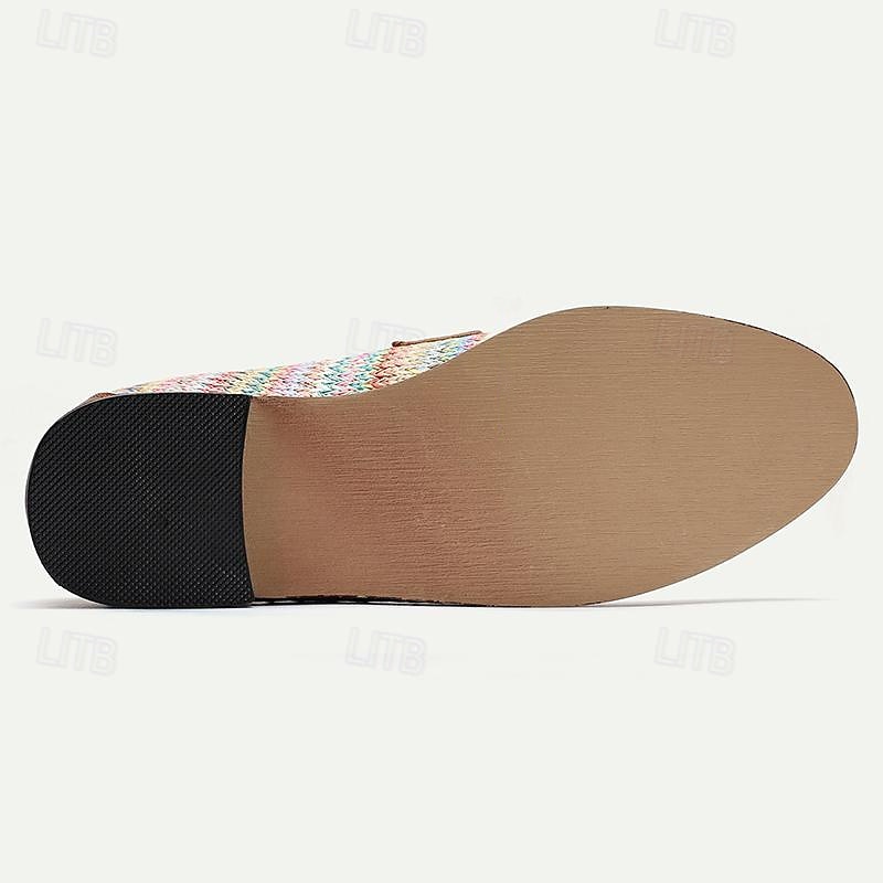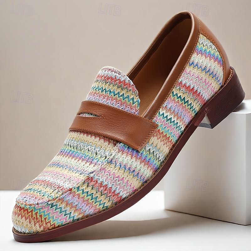 Men's Woven Multicolor Nylon Woven Slip-On Loafers with Leather Trim - Relaxed Fit for Casual Outings 6