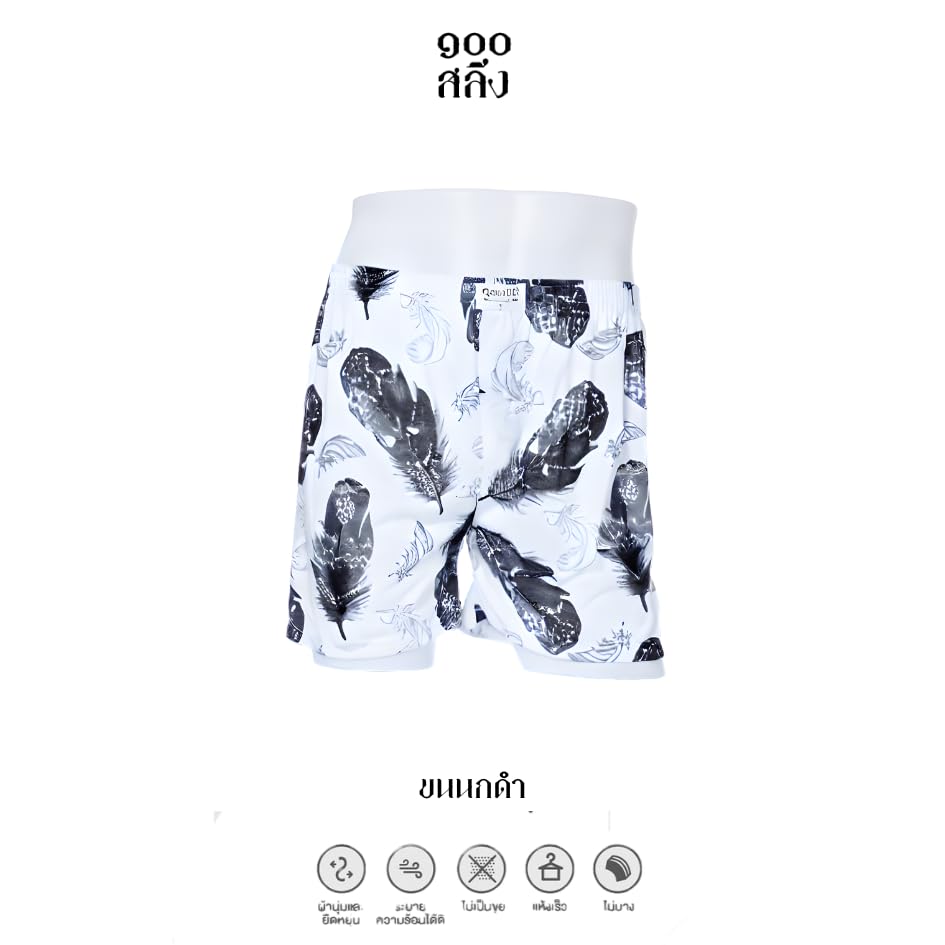 • Stylish Design: These boxer shorts feature a trendy feather pattern in shades of blue and purple, red and orange, grey and black on a white background.