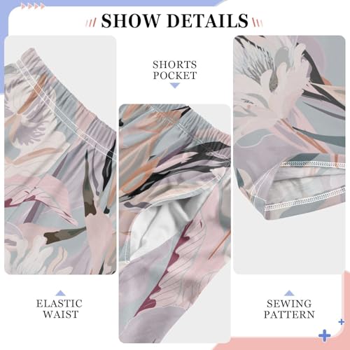 visesunny Boys' Pants Pink Tropical Flower Jogger Pants Elastic Waist Long Bottoms Trousers with Pockets 5