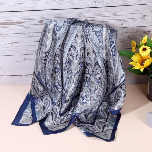 Blue Brown Bandana Silk Head Scarf, 27.5 Inches Brown Head Wrap for Women, Lightweight Square Headscarf for Hair 7