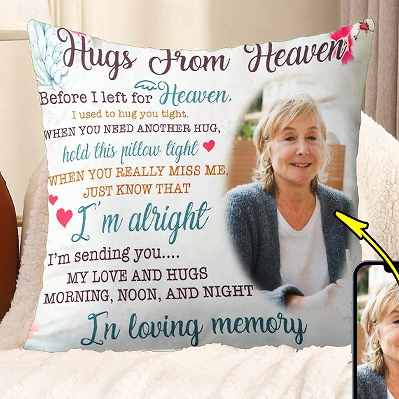 $14.49 - Custom Memorial Pillow Cover Photo Cushion Cover Throw Pillow Sympathy Gift Personalized Memorial Gifts Hug from Heaven 2025. Shop for cheap Textiles online? Buy at lightinthebox.com on sale today!