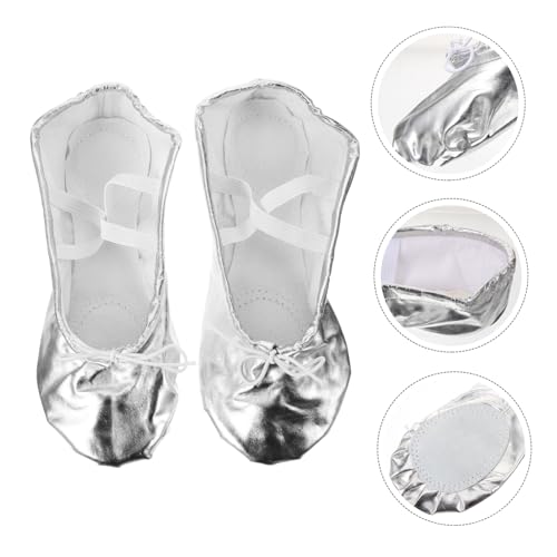 Boys and Girls Pu Leather Ballet Practice Shoes Non- Dance Shoes for Girls Silver for Yoga Gymnastics and Ballet Training 4