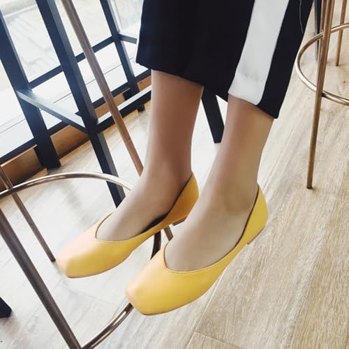 Women Flat Ballet Shoes Low Heel Shoes Square Toe Slip On Casual Driving Shoes, Size 2-15.5 5