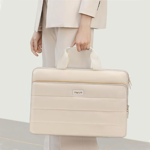 More information about MOSISO Puffy Laptop Shoulder Bag,15-15.6 inch Computer Bag Compatible with MacBook Pro 16 inch, HP, Dell, Lenovo, Asus Notebook,Polyester Horizontal Sleeve with Front Zipper Pocket&Belt, Sand