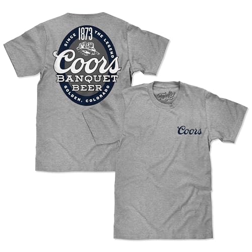 • The Legend Lives On!: Add a vintage touch to your outfit with this double-sided beer t-shirt featuring the Coors signature logo, and a Rocky Mountain inspired graphic - printed on the left chest and back of a soft, Athletic Heather tee.