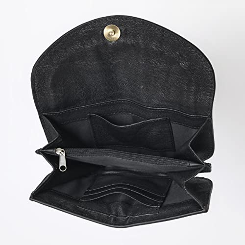 Women Cowhide Hairon and Tooled Leather Western Handmade Ladies Clutch Trifold Wallet 5