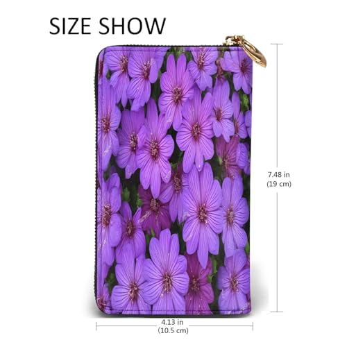 HOT ! Leather Wallet for Women & girls, Fashion Long billfold Wallets, Ladies purse for Daily, Purple Lily Flowers ID card package, Slim Thin RFID Blocking Credit Card Wallets with Zipper Coin Pocket