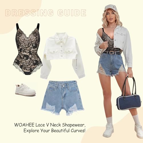 HOT ! woahee Lace Shapewear Bodysuit for Women Tummy Control Shapewear Sleeveless V-Neck Tank Tops Backless Thong Body Suit