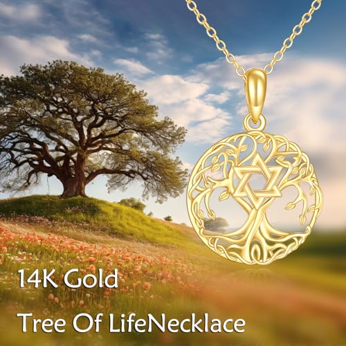 KECHO 14K Solid Gold Tree of Life Pendant Necklace 14K Real Gold Jewelry Anniversary Christmas Birthday Gifts for Women 6