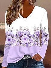 More information about Women's T Shirt Floral Graphic Plants Vintage Stylish Classic Long Sleeve V Neck Regular Tops Daily Print Purple Spring Fall Winter