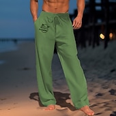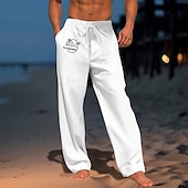 More information about Men's Letter Graphic Prints Trousers Summer Pants Beach Pants Mid Waist Streetwear Hawaiian Designer Casual Daily Holiday Drawstring Elastic Waist 3D Print Spring & Summer 3D Print White Light Green