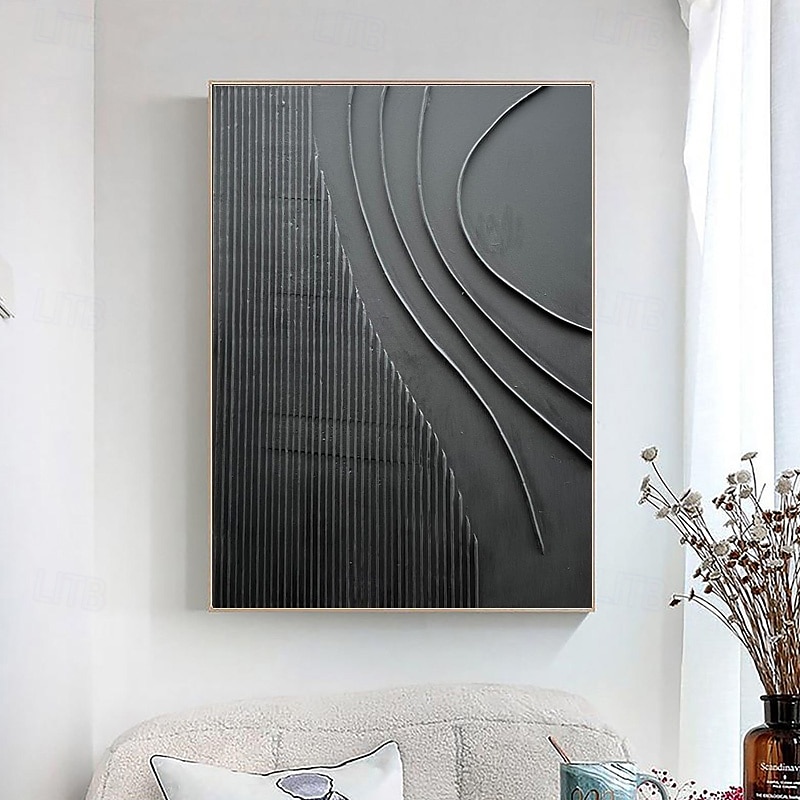 $131.99 - Black White Modern Minimalist Wall Art Modern Minimalist Art Black 3D Texture Painting Abstract Painting Home Wall Decor Stretched Frame Ready to Hang 2025. Shop for cheap Abstract Paintings online? Buy at lightinthebox.com on sale today!