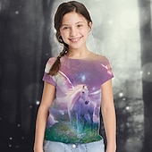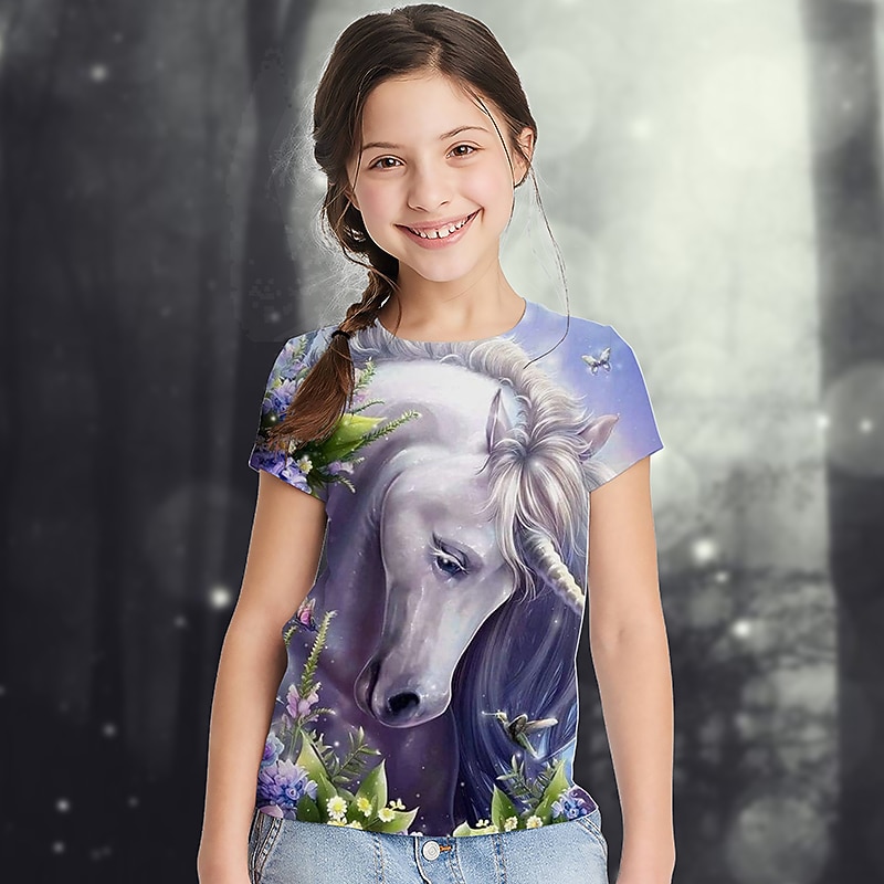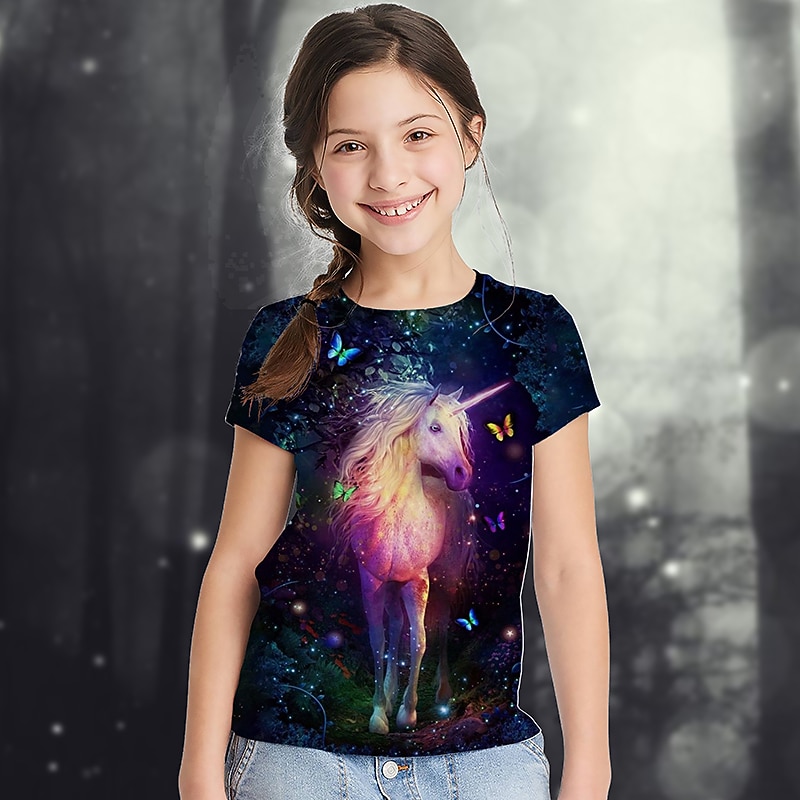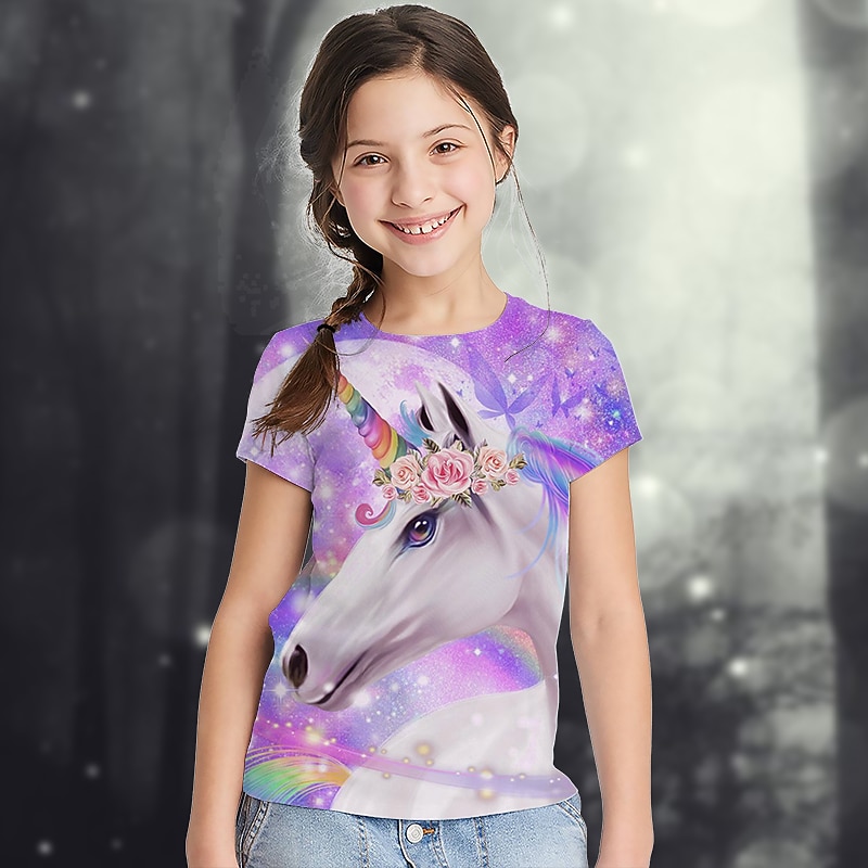 More information about Girls' 3D Graphic Animal Rainbow T shirt Tee Short Sleeve 3D Print Summer Active Cute Kids 2-13 Years School