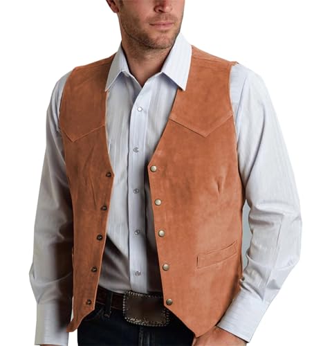 Mnjyihy Men Vintage Western Cowboy Suit Vest Solid Suede Leather V Neck Business Slim Banquet Wedding Waistcoat 1