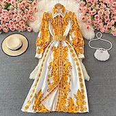More information about Women's Midi Dress Boho Dress Fashion Classic Vacation Going out Weekend Regular Fit Flower Long Sleeve Shirt Collar Yellow Summer