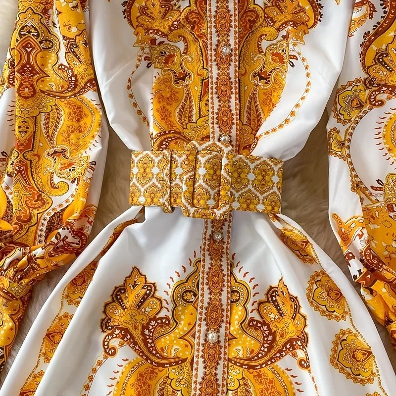Highlights - Perfect for summer vacations - Made from lightweight polyester fabric - Features long sleeves for a classic look - Beautiful print design - Designed with a flattering midi dress length - Great for women looking for a classic, stylish outfit for any occasion