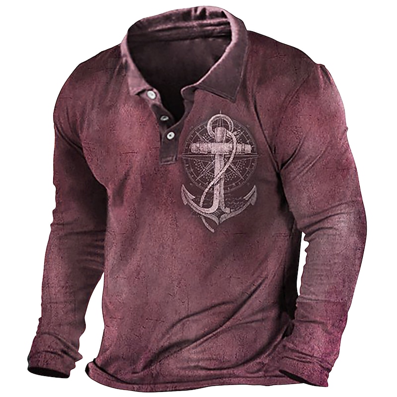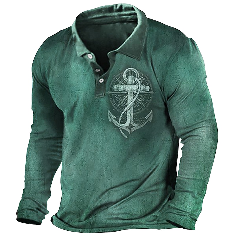 More information about Men's Nautical Polo Shirts Golf Shirt Long Sleeve Polo Shirts Collared Shirts Vintage Casual Vacation Wear Boat Wear Party Outfits 3D Print Buttons Wine Yellow Army Green