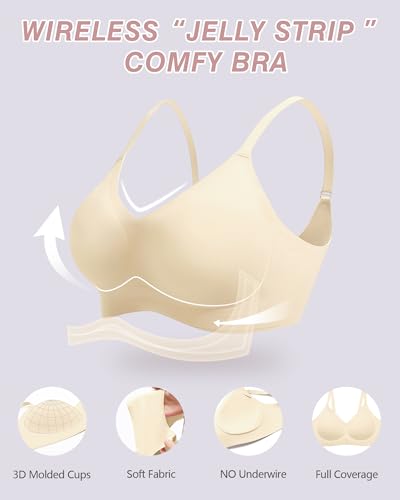 • 【Super Comfortable & Seamless Fit】Our everyday bra fabric is buttery soft, has a smooth material that conforms to the body's curves, and keeps you dry and comfortable all day. The plunge bra is soft and breathable, light as a cloud, and feels nonrestrictive while supporting. And the hem of wireless bras for women won't roll or move up, so you can move more freely.