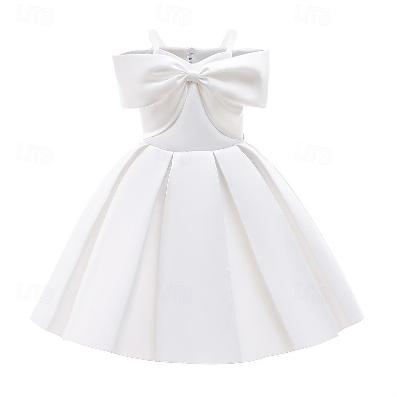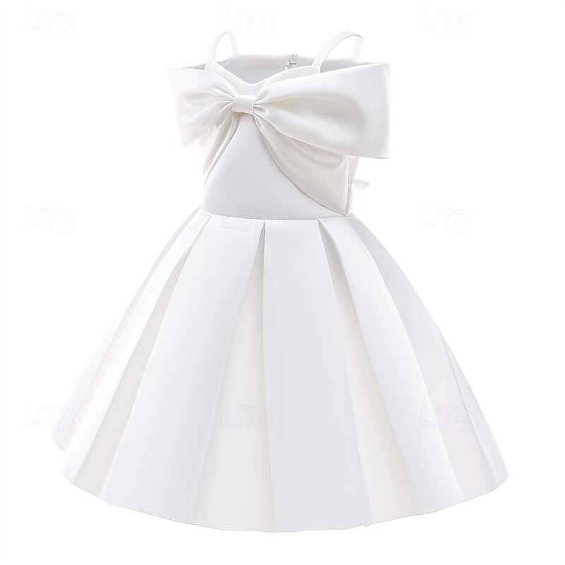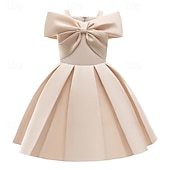 More information about Kids Girls' Party Dress Solid Color Sleeveless Performance Birthday Tie Knot Beautiful Sweet Cotton Maxi Party Dress Swing Dress A Line Dress Summer 4 years+ White Champagne Pink