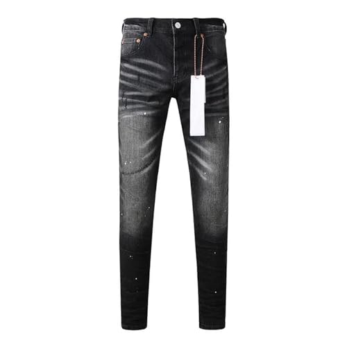 Men Vintage Washed Black Stretch Skinny Button Fly Ripped Jeans Classic Zipper Biker Straight Denim Pants 7