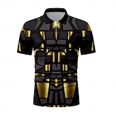 More information about Men's Graphic Zip Polo Shirts Golf Shirt Short Sleeve Polo Shirts Collared Shirts Casual Vacation Wear Rave Wear Party Outfits 3D Print Quarter Zip Polo Summer Golden yellow Black Navy Blue
