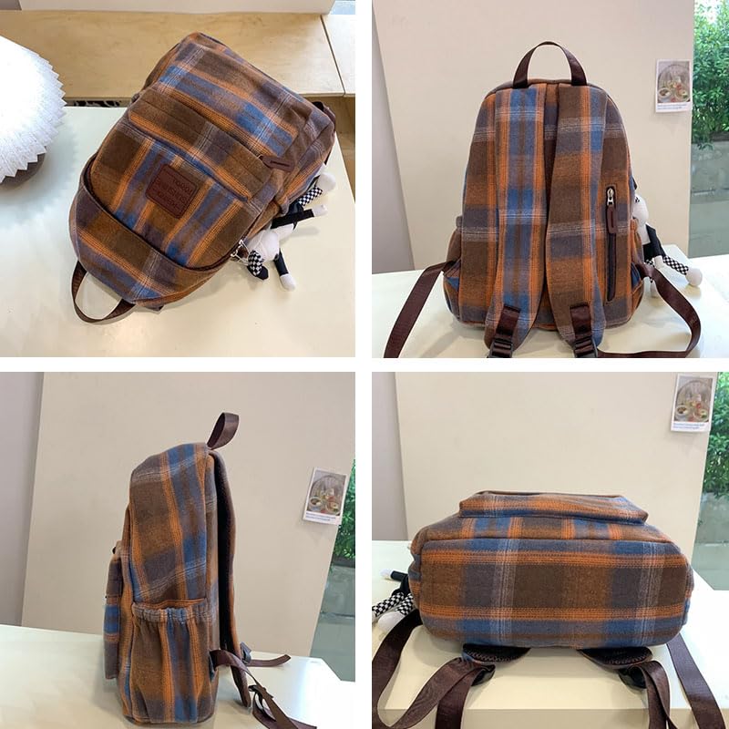 HOT ! 2025 Plaid Preppy Backpack for Women Y2k Aesthetic Shoulder Bag Vintage Daypack with Pendant Checkered Laptop Bag (Black)