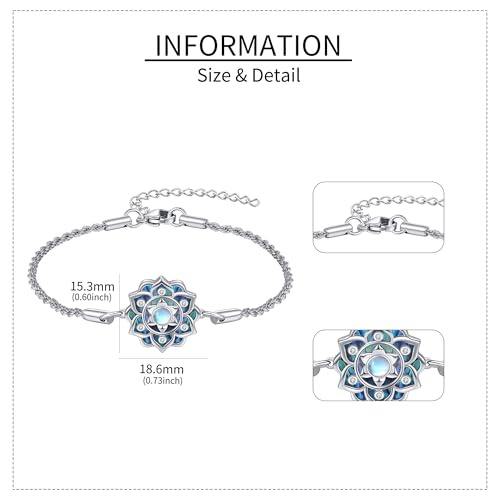 ONEFINITY Moonstone Lotus Bracelet 925 Sterling Silver Abalone Shell Lotus Flower Bracelets Yoga Jewelry Gifts for Women Mom 4