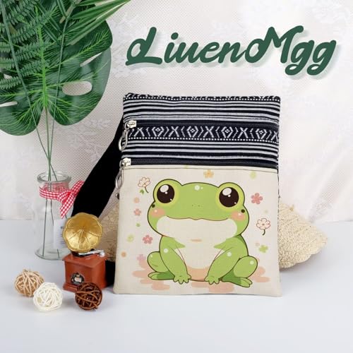 Lovely Frog Messenger Bag Small Ethnic Pattern Printed Adjustable Strap Crossbody Zipper Bag Lovely Frog Phone Bag Wallet Cute Shoulder Handbag for Women - 1 1