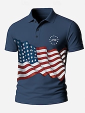HOT ! Independence Day Men's American Flag Polo Short Sleeves Lapel Casual Daily Sports & Outdoor Athleisure Festival Buttons Summer White Navy Blue