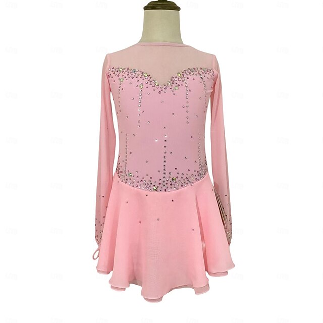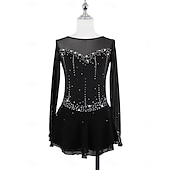 More information about Figure Skating Dress Women's Girls' Ice Skating Dress Black Pink Orange Thumbhole Mesh Spandex Stretchy Training Practice Professional Skating Wear Thermal Warm Classic Crystal / Rhinestone Long